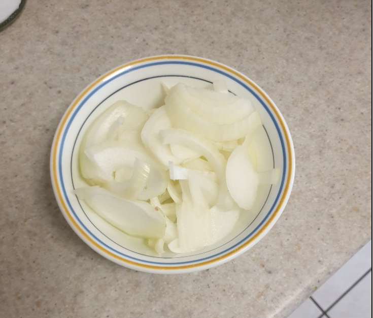 3. 담가놓는 동안에 양파를 썰어줍니다.
